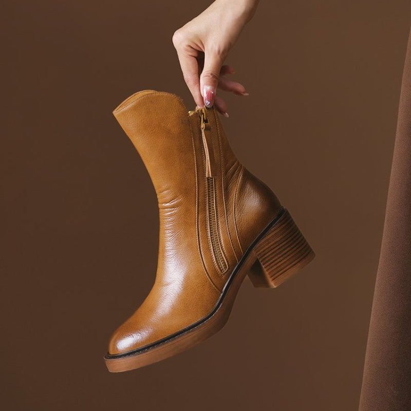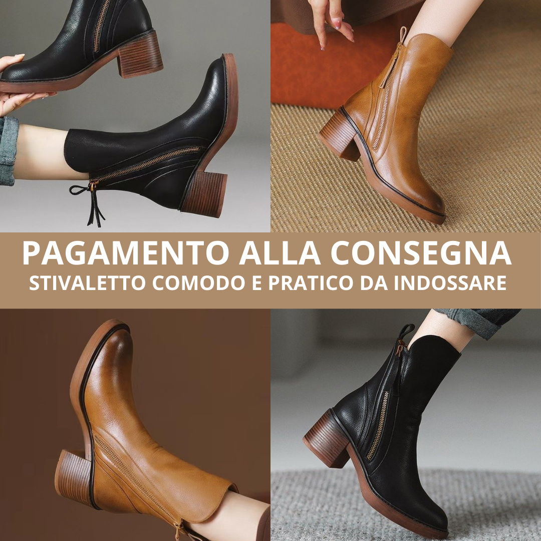 Grazie alla sua struttura ergonomica, al tacco stabile e alla suola antiscivolo, camminare non è mai stato così confortevole. La zip laterale permette una calzata facile e veloce, mentre la pelle di alta qualità garantisce durata e traspirabilità. Indossalo per ore senza rinunciare al benessere dei tuoi piedi: questo stivaletto è pensato per sostenerti con stile in ogni momento della giornata.